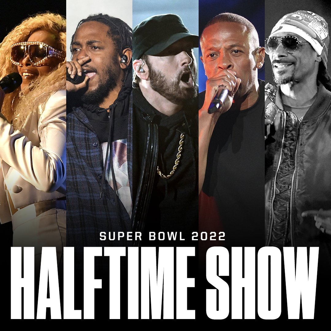 Super bowl 2022 halftime show. Blige Kendrick Lamar Snoop Dogg and Eminem will headline the Pepsi Super Bowl Halftime Show 2022. Dre Snoop Dogg Eminem Mary J. Which teams are currently favorites in each conference to play in and win the Super Bowl next season.